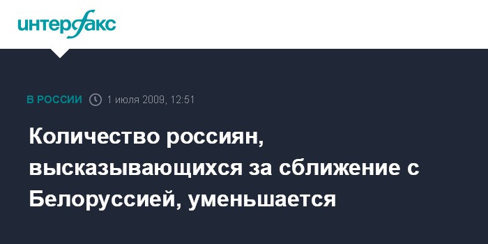 Москва. 1 июля. INTERFAX.RU - Исследования социологов показывают снижение числа россиян, высказывающихся за сближение с Белоруссией, при этом за прошедший год граждане РФ несколько изменили свое отношение к президенту Александру Лукашенко.