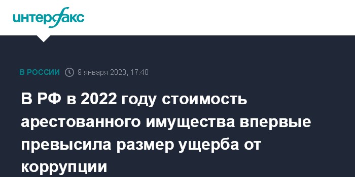 В РФ в 2022 году стоимость арестованного имущества впервые превысила размер ущерба от коррупции