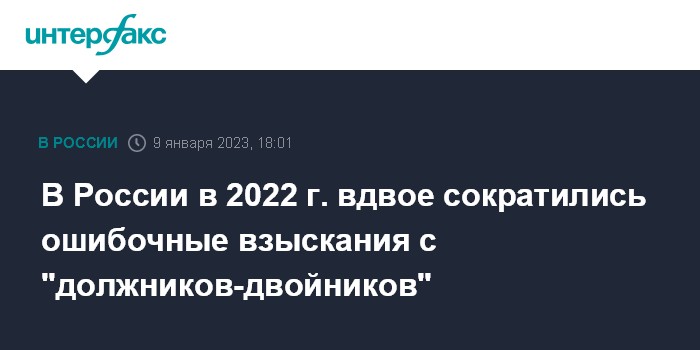 В России в 2022 г. вдвое сократились ошибочные взыскания с "должников-двойников"