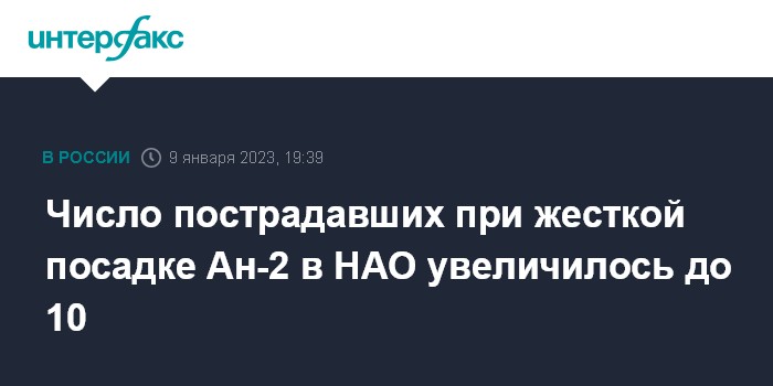Москва. 9 января. INTERFAX.RU - В результате жесткой посадки Ан-2 в Ненецком автономном округе (НАО) 10 человек пострадали, еще двое погибли, сообщил глава округа Юрий Бездудный.