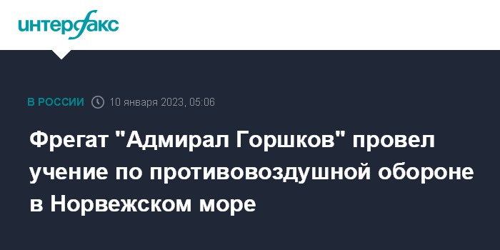 Москва. 10 января. INTERFAX.RU - Экипаж фрегата "Адмирал флота Советского Союза Горшков" провел учение по отражению воздушного нападения условного противника в Норвежском море, сообщила во вторник пресс-служба Северного флота.