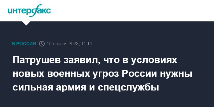 "Нам же в условиях появления новых военных угроз важно иметь такие вооруженные силы и спецслужбы, чтобы у противников России даже мысли не было, что они могут воевать с нами", - сказал Патрушев в интервью, которое опубликовано на сайте "Аргументов и фактов"