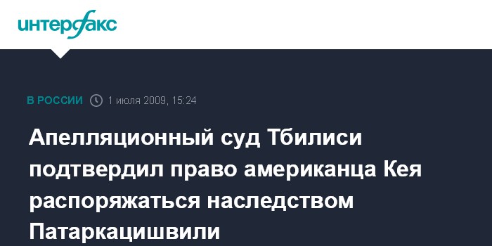 Москва. 1 июля. INTERFAX.RU - Тбилисский апелляционный суд оставил в силе решение городского суда о предоставлении права на исполнение завещания миллиардера Бадри Патаркацишвили его дальнему родственнику, бизнесмену, гражданину США Джозефу Кею.