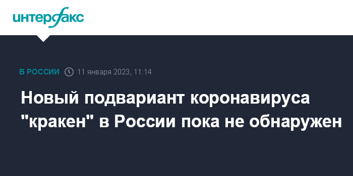 Москва. 11 января. INTERFAX.RU - Новый подвариант омикрон-штамма коронавируса XBB.1.5, получивший название "кракен" и отличающийся большей заразностью, в России не обнаружен, сообщила начальник управления эпидемиологического благополучия населения Роспотребнадзора Марина Шарабакина.