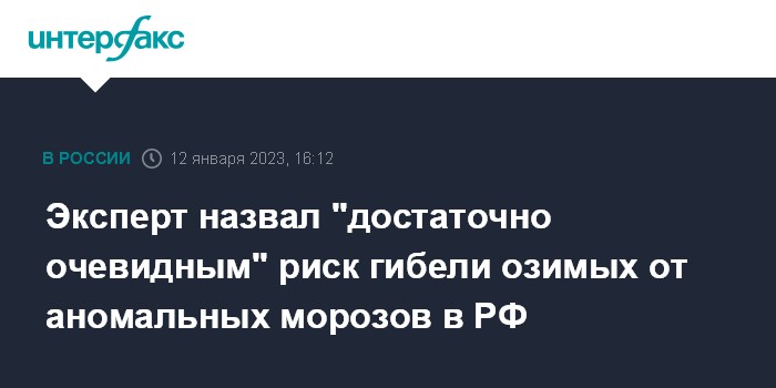 "Риск для озимых есть. В первую очередь, на тех полях, в тех районах, где снега мало и где сев озимых запоздал и проводился за пределами оптимальных сроков. Как он проявится реально, сейчас сказать трудно. Это станет более-менее ясно в марте. Но риск есть, и он достаточно очевиден", - заявил Корбут "Интерфаксу".