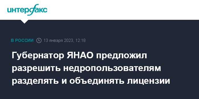 Губернатор ЯНАО предложил разрешить недропользователям разделять и объединять лицензии