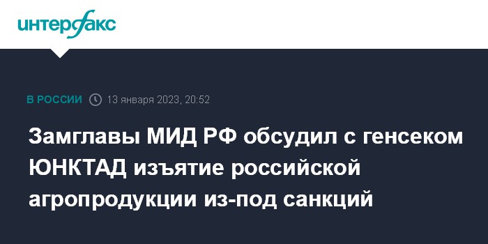 Замглавы МИД РФ обсудил с генсеком ЮНКТАД изъятие российской агропродукции из-под санкций