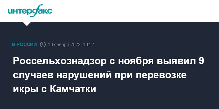 Москва. 16 января. INTERFAX.RU - Россельхознадзор с ноября 2022 года, с начала эксперимента по вывозу икры лососевых с Камчатки в ручной клади или багаже авиапассажиров, выявил девять случаев нарушений установленных правил.