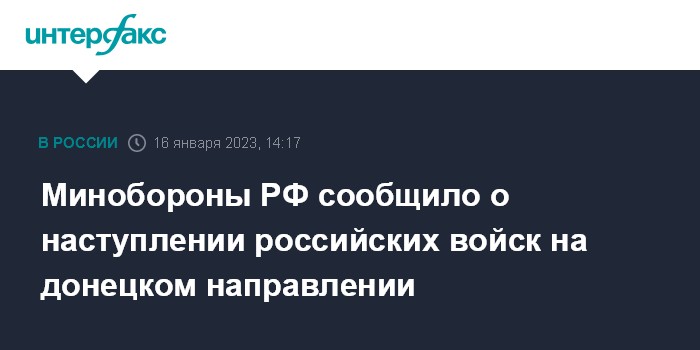 Минобороны РФ сообщило о наступлении российских войск на донецком направлении
