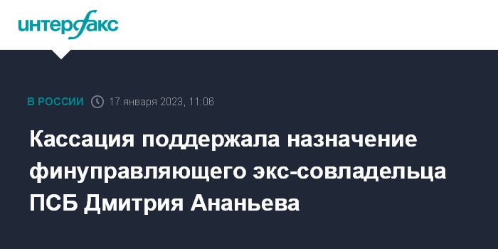 Кассация поддержала назначение финуправляющего экс-совладельца ПСБ Дмитрия Ананьева