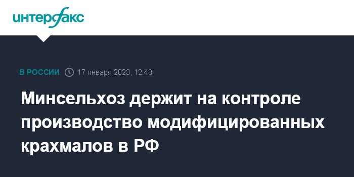 Минсельхоз держит на контроле производство модифицированных крахмалов в РФ