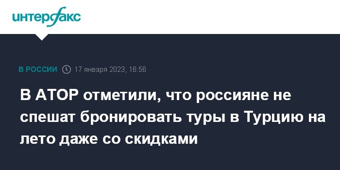 "Как отметили в компании Coral Travel, в 2019 году была фактически последняя кампания раннего бронирования, которая состоялась в полной мере. В 2020 и 2021 году ей помешал ковид, а в 2022 году - приостановка авиасообщения. Из-за этого в 2023 году темп бронирования пока невысокий. Вторая причина - в том, что пока еще не выставлены все полетные программы как из Москвы, так и из регионов. Туры в Турцию предлагаются из 15-18 городов, но ближе к февралю это число будет расти", - рассказали в АТОР.