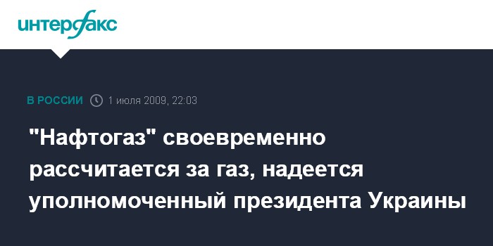Киев. 1 июля. ИНТЕРФАКС-УКРАИНА - Уполномоченный президента Украины по вопросам энергобезопасности Богдан Соколовский выразил надежду, что Национальная акционерная компания (НАК) "Нафтогаз Украины" своевременно рассчитается с российской стороной за поставленный в июне газ.