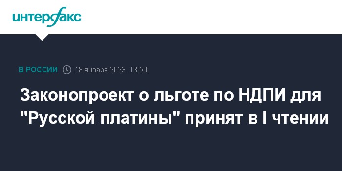 Законопроект о льготе по НДПИ для "Русской платины" принят в I чтении