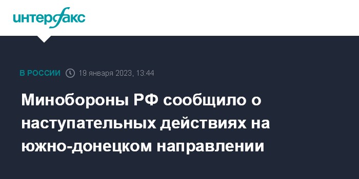 Москва. 19 января. INTERFAX.RU - Российские войска ведут наступательные действия на южно-донецком направлении, заняли здесь выгодные рубежи, сообщил официальный представитель министерства обороны РФ генерал-лейтенант Игорь Конашенков.