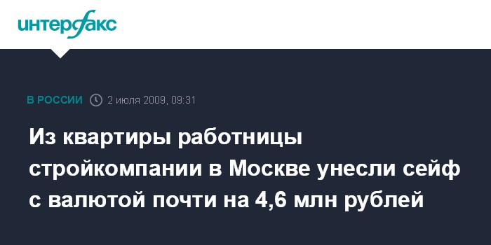 Из квартиры работницы стройкомпании в Москве унесли сейф с валютой почти на 4,6 млн рублей