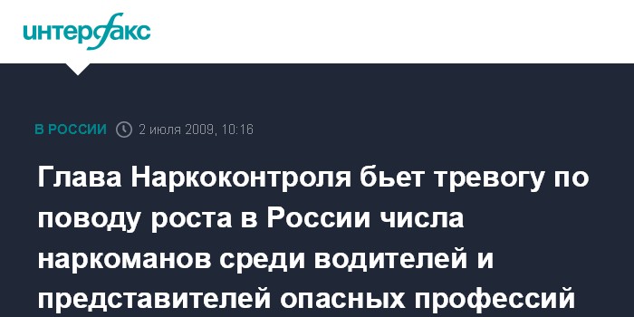 Москва. 2 июля. INTERFAX.RU - В руководстве Федеральной службы РФ по наркоконтролю (ФСКН) обеспокоены радикальным увеличением числа водителей-наркоманов на дорогах страны.