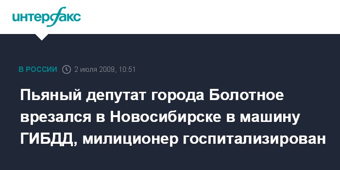 Москва. 1 июля. INTERFAX.RU – В Железнодорожном районе Новосибирска произошло ДТП с участием автомобиля депутата городского собрания города Болотное Новосибирской области и автомашины ГИБДД.