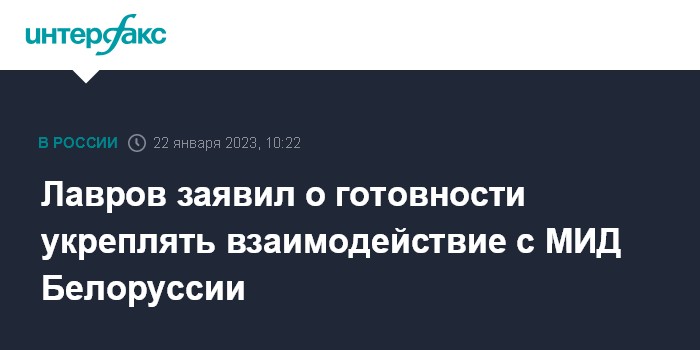 Москва. 22 января. INTERFAX.RU - Министр иностранных дел России Сергей Лавров заявил о необходимости укрепления взаимодействия российской и белорусской дипломатических служб.