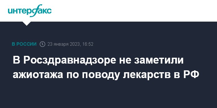 Москва. 23 января. INTERFAX.RU - В России не фиксируется особый ажиотаж по лекарственным препаратам, сообщила руководитель Росздравнадзора Алла Самойлова.