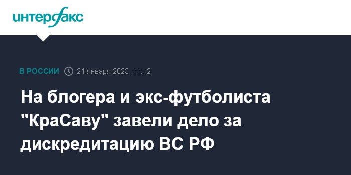 На блогера и экс-футболиста "КраСаву" завели дело за дискредитацию ВС РФ