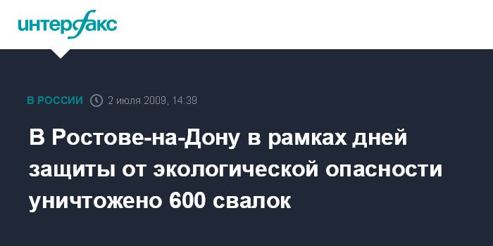 Москва. 2 июля. INTERFAX.RU - В Ростове-на-Дону в рамках проведения дней защиты от экологической опасности с 22 марта по 5 июня на полигон твердых бытовых отходов было вывезено более 1,1 тыс. тонн мусора и ликвидировано около 600 свалок. Благоустроены 10 родников, очищены береговые полосы прудов по ул. Можайская и Ростовского моря, а также набережная Дона.
