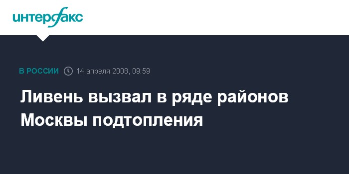 Москва. 14 апреля. INTERFAX.RU - Сильный дождь, шедший в Москве всю ночь и продолжающийся утром в понедельник, привел к образованию подтоплений на столичных улицах, сообщил "Интерфаксу" источник в городской администрации.