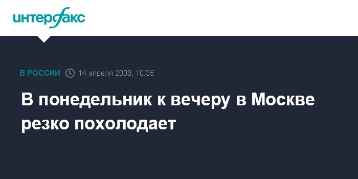 Москва. 14 апреля. INTERFAX.RU - К вечеру температура в Москве понизится до 6 градусов, сообщил "Интерфаксу" в понедельник генеральный директор Гидрометеобюро Москвы и Московской области Алексей Ляхов.