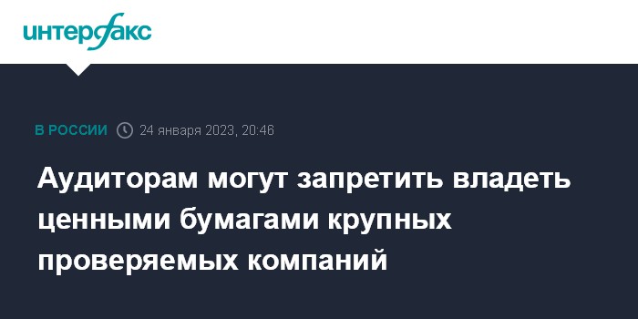 Москва. 24 января. INTERFAX.RU - Правительство РФ предлагает расширить требования к независимости аудиторов от компаний, отчетность которых они должны проверять. Как рассказал источник "Интерфакса", аудиторские услуги не должны оказываться, если у руководителя или участника аудиторской группы либо у их близких родственников есть финансовые инструменты (акции, облигации и пр.) потенциального клиента.