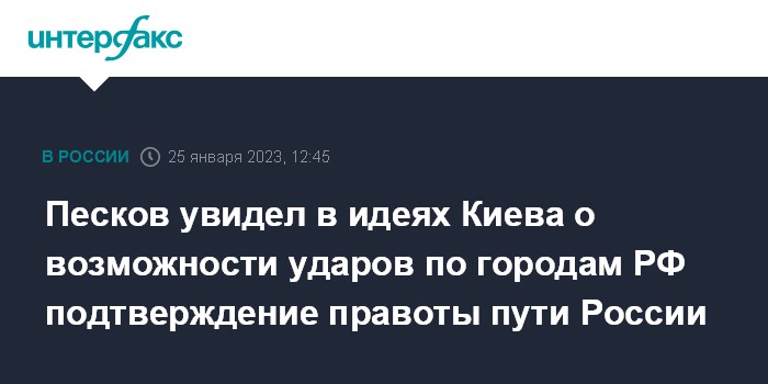 Песков увидел в идеях Киева о возможности ударов по городам РФ подтверждение правоты пути России