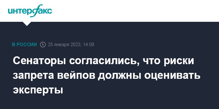 Москва. 25 января. INTERFAX.RU - Полный запрет вейпов имеет определенные риски, необходимо изучить вопрос на экспертном уровне с привлечением Минздрава и Роспотребнадзора, считает первый замглавы комитета Совета Федерации по экономической политике Алексей Синицын.