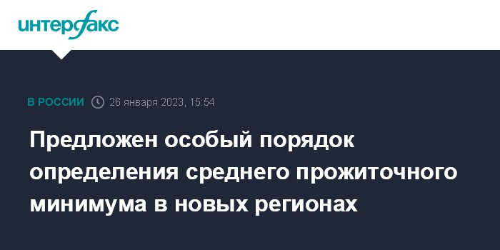 Москва. 26 января. INTERFAX.RU - Правительство подготовило законопроект об особом порядке установления среднего прожиточного минимума на новых территориях, из которого, в том числе, рассчитывается размер единого пособия нуждающимся семьям, сообщил на заседании кабинета министров премьер-министр Михаил Мишустин.
