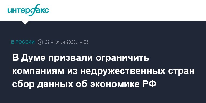 В Думе призвали ограничить компаниям из недружественных стран сбор данных об экономике РФ