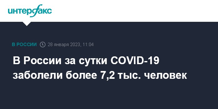 Москва. 28 января. INTERFAX.RU - Суточный прирост новых заболевших коронавирусной инфекцией в РФ стал максимальным с начала года и составил 7 219 случаев, следует из данных оперативного штаба, обнародованных в субботу.
