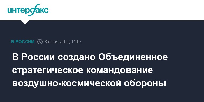 Москва. 3 июля. INTERFAX.RU - Объединенное стратегическое командование воздушно-космической обороны (ОСК ВКО) впервые создано в Вооруженных силах России, сообщили в пятницу "Интерфаксу-АВН" в российском Генштабе. Как сказал собеседник агентства, новый орган военного управления создается на базе расформированного с 1 июля Командования специального назначения (бывший Московский округ ВВС и ПВО - ИФ), а также ряда других структур Военно-воздушных сил и Космических войск.