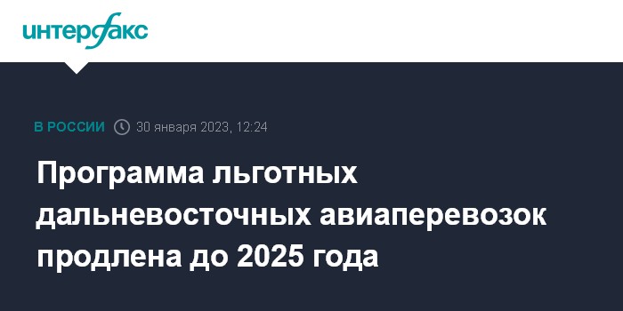Москва. 30 января. INTERFAX.RU - Правительство продлило программу дальневосточных авиаперевозок до 2025 года, сообщил на совещании с вице-премьерами премьер-министр Михаил Мишустин.