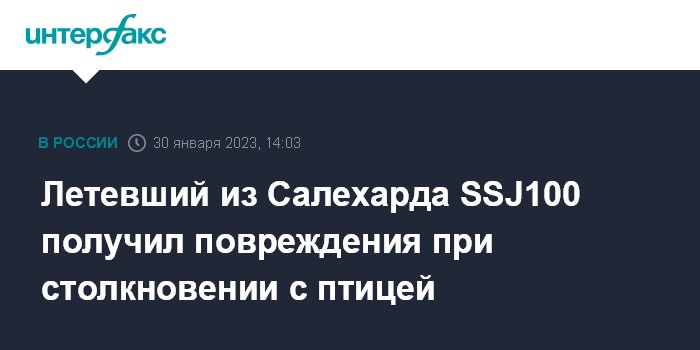 Летевший из Салехарда SSJ100 получил повреждения при столкновении с птицей