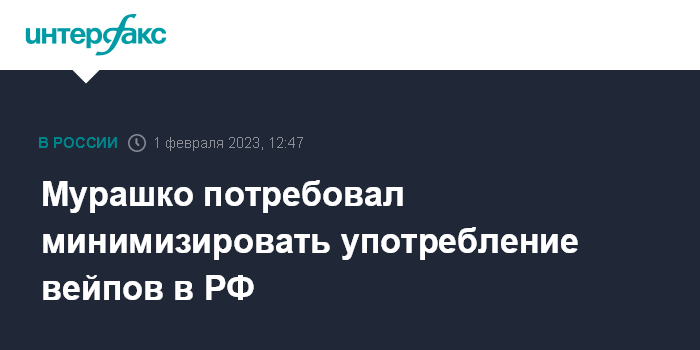 Москва. 1 февраля. INTERFAX.RU - Курение вейпов в России необходимо минимизировать, заявил министр здравоохранения РФ Михаил Мурашко.
