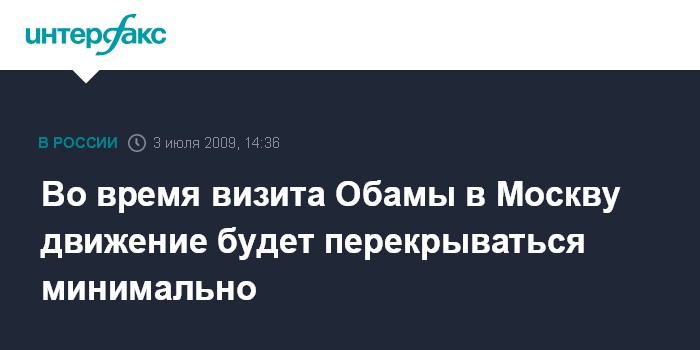 Москва. 3 июля. INTERFAX.RU - Движение автотранспорта по улицам в центре Москвы во время визита президента США Барака Обамы будет перекрываться "точечно" на время проезда кортежа, сообщили "Интерфаксу" источник в правоохранительных органах в пятницу.
