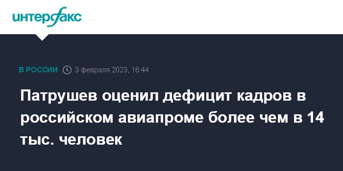 "Несмотря на принимаемые меры, сохраняется острый дефицит инженерно-технических кадров и работников, в том числе конструкторов и технологов. На сегодняшний день общая потребность предприятий авиапрома составляет свыше 14 тысяч человек", - сказал он, выступая в Рыбинске на совещании по подготовке кадров для российского авиапрома.