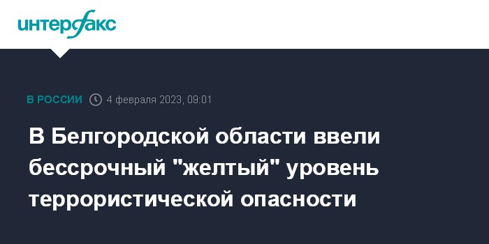 В Белгородской области ввели бессрочный "желтый" уровень террористической опасности