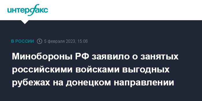 Минобороны РФ заявило о занятых российскими войсками выгодных рубежах на донецком направлении