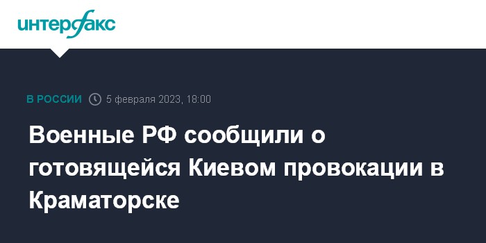 Москва. 5 февраля. INTERFAX.RU - Российские военные заявили, что располагают информацией о планах украинских спецслужб устроить провокацию в Краматорске, чтобы обвинить армию РФ в ударах по гражданским объектам.