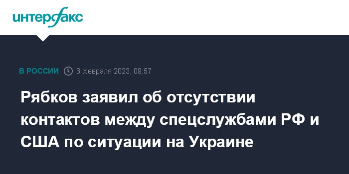 "И в принципе не очень понятно, откуда берутся подобного рода вбросы и с какой целью проходят сообщения, которые вызывают волну спекуляций. У нас нет с американцами сейчас диалога по тематике СВО, Украины, ни по каким линиям кроме общения соответственно представителей МИД и Госдепартамента с посольствами США в Москве и России в Вашингтоне, эпизодические телефонные звонки на других уровнях имеют место. Но никаких встреч, никаких специализированных форматов для подобного рода консультаций не практикуется. По крайней мере на нынешнем отрезке этого нет", - подчеркнул Рябков.