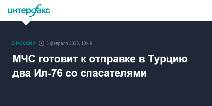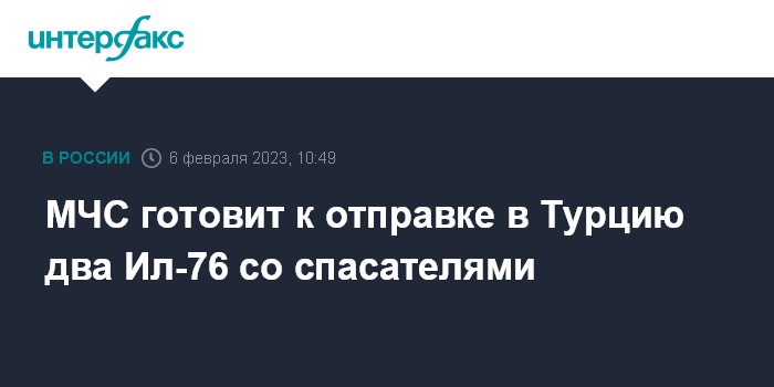 Москва. 6 февраля. INTERFAX.RU - Российское МЧС начало подготовку к отправке в Турцию двух самолетов Ил-76 со спасателями, сообщила пресс-служба министерства. В на юго-востоке Турции утром произошло мощное землетрясение с многочисленными жертвами.