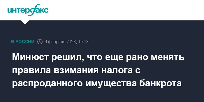 Минюст решил, что еще рано менять правила взимания налога с распроданного имущества банкрота