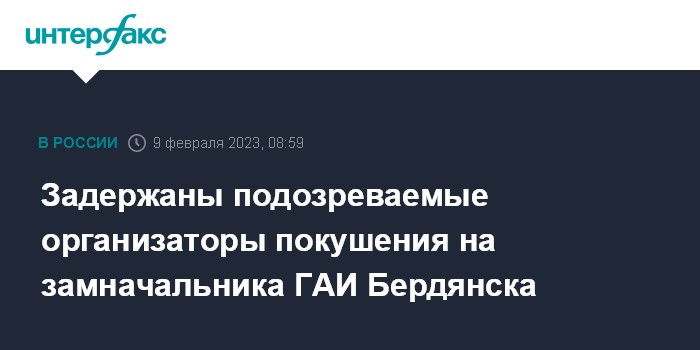 Москва. 9 февраля. INTERFAX.RU - Задержаны подозреваемые в организации нескольких покушений в Бердянске Запорожской области, сообщил журналистам представитель спецслужб.