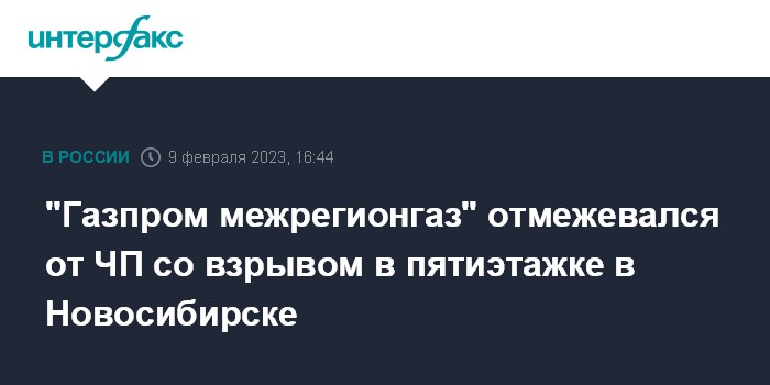 Москва. 9 февраля. INTERFAX.RU - Сотрудники "Газпром межрегионгаза" не имеют отношения ко взрыву и обрушению жилого дома в Новосибирске и к компании, которая упоминается в уголовном деле об этом инциденте, заявила дочерняя компания "Газпрома".