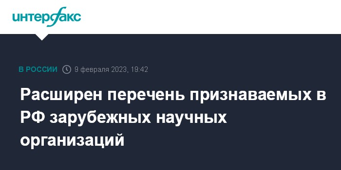 Расширен перечень признаваемых в РФ зарубежных научных организаций