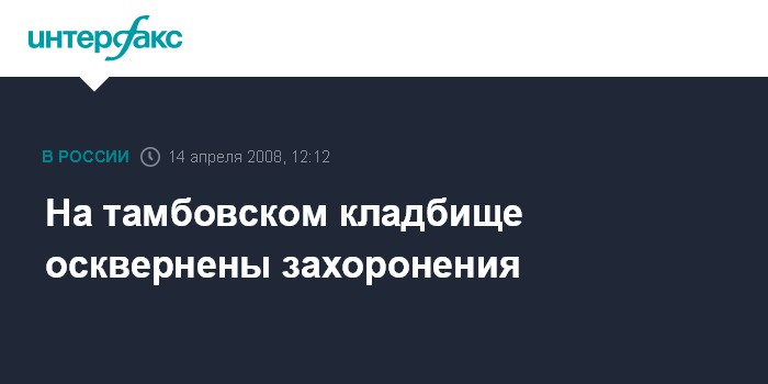 Тамбов. 14 апреля. INTERFAX.RU - В Тамбове на Петропавловском кладбище украли памятники из нержавеющей стали, сообщили "Интерфаксу" в понедельник в пресс-службе УВД. По словам собеседника агентства, в воскресенье двое пенсионеров обратились с заявлением в ОВД Советского района областного центра.